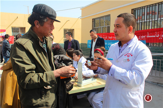 新疆民生网讯 (通讯员 王海鸥)为响应“公民道德建设月”活动号召,大力弘扬“奉献、友爱、互助、进步”的志愿精神,3月18日,阿克苏市卫计委利用行业优势,在喀拉塔勒镇萨提村开展志愿服务大型义诊活动。