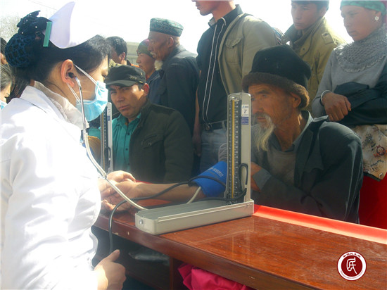 新疆民生网讯 (通讯员 徐新虎、张淑芳)3月18日一大早,“村里来了支学雷锋义诊志愿服务队”的消息迅速在喀拉塔勒镇纳玛特村传播开来,村民们三三两两纷纷向大队部涌去……