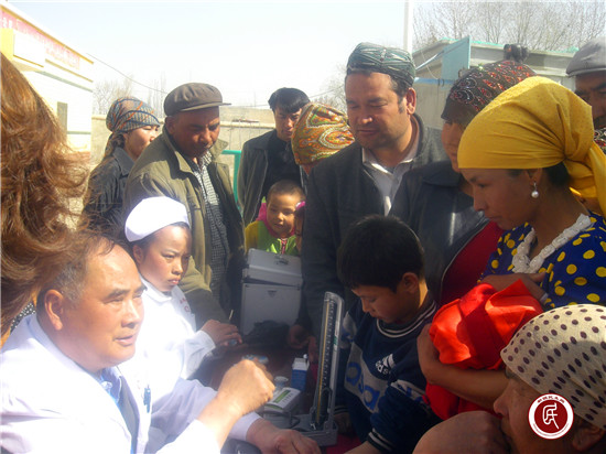 现年87岁的依明.吐木尔大爷高兴地说:“我们年纪大的人平时行动不方便,小病小痛难得到医院去做检查。今天医生志愿者到我们大队搞义诊,真是方便我们这些老人了,谢谢你们!”