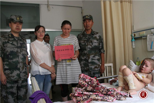 在得知邻村中道杆村村民买买提·艾买提和小女儿因被大火烧伤,至今总花费十余万,这无疑令本来就不宽裕的家庭雪上加霜,后续巨额的医药费更是让他们一家束手无策的情况后,由陆军边海防学院的全体教员、学员牵头,发起了一场声势浩大的爱心捐款行动。巴格吉代工作队队员、广大教员、学员纷纷解囊,捐款相助,传递着爱的温暖与无私的奉献。仅一上午,筹集捐款9200元。7月30日上午,学员代表与巴格吉代村工作队一起,把善款交到了买买提·艾买提亲属手中。