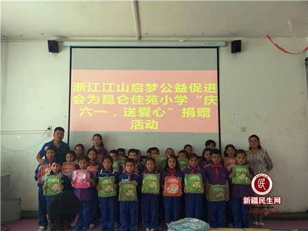 新疆民生网(周军、刘英慧)2019年6月3日下午,阿克陶县昆仑佳苑小学举行了“浙江江山启梦公益促进会为昆仑佳苑小学”庆六一 送爱心”为主题的捐赠活动,为学生发放爱心书包。