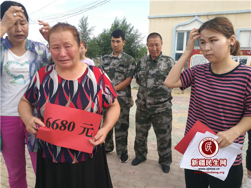 短短两天的时间,已筹集善款6680元。7月15日清晨,在村委会举行升国旗宣讲活动现场,工作队再次进行了献爱心倡议,工作队队长段永德将爱心善款送到卡斯代力的母亲买然古力手里。