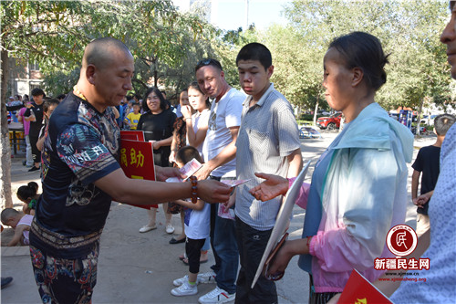 新疆民生网(霍延磊)送人玫瑰,手有余香。8月8日,由昌吉市建国路街道和畅园社区举办的“和谐家园 用爱凝聚”公益活动中,两位爱心企业家拿出10000元资助了10户困难家庭,现场的居民们纷纷为他们的慷慨之举点赞。