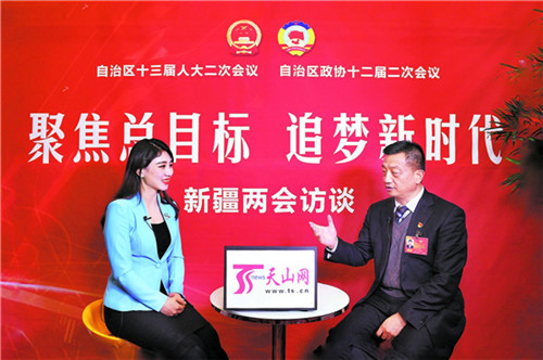 治区政协委员李宏斌接受采访。□本报记者张万德摄