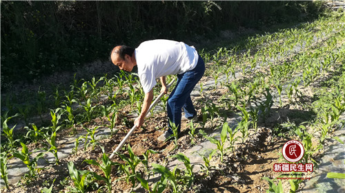 “再过两天,我的汉族亲戚就要来了,我的胃又要享福了。”塔帕尼掰着手指算着。与许作成结亲时塔帕尼已经58岁了,大儿子2015年东城镇抗洪救灾中牺牲,他的胃癌已到了晚期,为了生活方便,他平常都住在县城,每次算好亲戚住亲的时间,他总回提前回到村里。许作成深深地理解塔帕尼重疾在身又遭丧子之痛的心情,考虑到胃癌病人对饮食要求高,每次到亲戚家,他都提前买好蔬菜水果,一日三餐为塔帕尼做营养餐,督促他规律饮食。塔帕尼最喜欢吃许作成做的汤饭,面片扯得又薄又小,味道不咸不淡,中午还没吃够,早上起来也要吃,许作成不嫌麻烦,大清早起床就在厨房里忙活。陪老人吃完饭,许作成收拾完碗筷,也没让自己闲着,看着院子里2亩多玉米地中疯长的野草,他默默地拿起锄头一干就是5天。2018年8月塔帕尼因病去世了,许作成又与塔帕尼的小儿子结成了亲戚,他又成了叶斯宝力的好帮手。