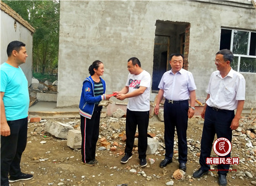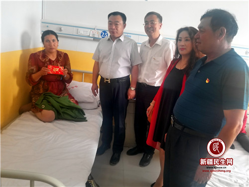 6月28日下午,新疆山东商会会长张保华、常务副会长兼党支部书记孙建斌等一行5人风尘仆仆赶到托万克喀尕吐尔村。甫一下车,便在工作队和村两委陪同下,前往贫困户和低收入群众家中进行慰问,张保华会长详细询问了贫困群众生产生活情况,了解发展意愿,并送上慰问金。张保华会长一行还特意前往镇医院,看望了突发心脏疾病的低收入困难户奥格莱姆。奥格莱姆接过慰问金,眼含热泪说:“感谢山东商会和工作队领导们的关心,我生病的这段时间,工作队始终把我的困难记在心上,谢谢你们,谢谢党的好政策!”