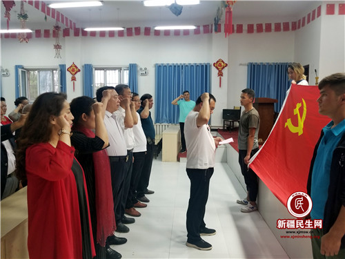 晚上八点整,在庄严的国歌声中,主题为“党旗映天山”的党日活动暨“民族团结一家亲”联谊活动正式拉开序幕。山东商会常务副会长兼党支部书记孙建斌首先带领山东商会一行和工作队、托万克喀尕吐尔村党员们重温入党誓词,在殷红的党旗下,大家庄严宣誓,表达对党的绝对忠诚,展示为共产主义奋斗终身的决心及随时准备为党和人民牺牲一切的革命精神。