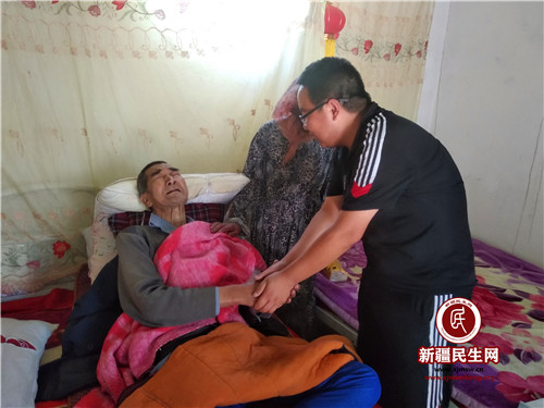 还记得第一次来结亲时见面的场景,热合曼·吐尔地大叔斜窝在床上,正打着点滴,旁边的小桌上满满的都是药瓶、药盒,看到我进屋来,老伴便去招呼大叔坐起来,暗淡的目光虚弱的挤出一句“你……好”便又躺下了,“热合曼大叔,你好!我叫汪陇杰,是国家干部,从今天起,我们就是亲戚了!”我故意放大了分贝,好让大叔听得清楚一些。一听到说我是国家干部,暗淡的目光一点点又亮了起来,虽没有言语,抬起的一只胳膊示意我坐下。