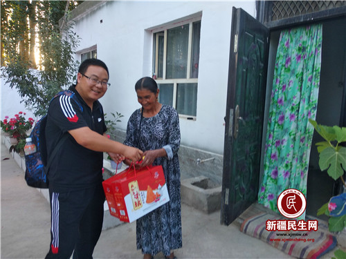 和大叔一家人一起吃了顿团圆饭。离别之际,大叔老伴鼓鼓囊囊给我装了一包东西,杏干、核桃、红枣……,“这个……你吃,好吃……”大叔指着老伴儿手里的包用生硬的汉语跟我说。我坚决表示不能收,大叔眼神的真诚和坚持让我无法拒绝,大叔是真把我当成了亲人。我拿出营养粉给大叔冲了一碗,“这个是营养粉,对身体康复有好处,平时饿了开水一冲就可以吃,吃完了我下次来还给你带。”大叔眼圈又有些泛红,拉着我的手跟我说了很多,虽然我没有全听懂,但是我明白,大叔是在感谢我,感谢党和国家的好政策。