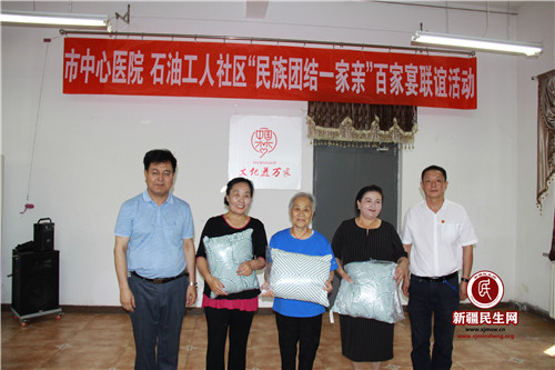 石油工人 “访惠聚”工作队队长李蛟龙说:“今天的活动不光是社区的居民和她们的对子来了,我们市、区两级联点单位的同志们和大党委成员单位克拉玛依市中心医院的同志们也都来了并给予了我们很大的支持。今天我们’访惠聚‘工作队举办的这个‘民族团结一家亲’百家宴活动,主要目的就是拉进我们之间的感情, 让咱们石油工人社区各民族亲如一家。”