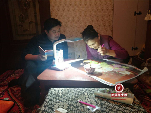 努尔尼沙阿姨酷爱刺绣,以打发孤寂的时日,当陈向杨和卡德尔江看到此情此景,对这位维族妈妈充满了同情和怜爱,一方面抽出时间陪伴她,拉家常、谈心谈话,排解着一个老人的孤寂,另一方面送了一盏明亮的台灯,并把家里的所有灯泡都换成新的。那个曾在昏暗灯光下刺绣的妈妈,眼里含着泪水,感知着两个“儿子”的用心。