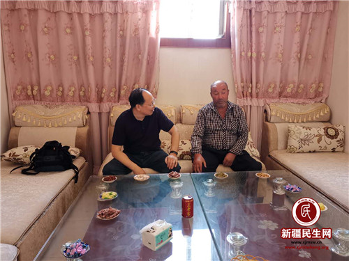 刘星带着慰问金和慰问品来到自己的结亲对象玉努斯·艾合买提家,与玉努斯·艾合买提深入交流,一起谋划脱贫良策。
