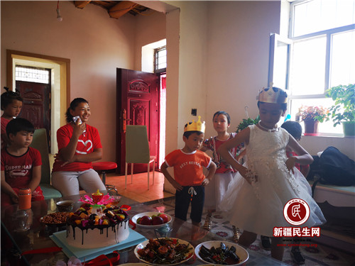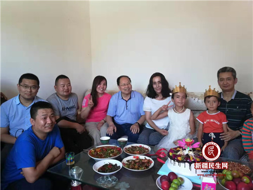 新疆民生网(王勇)“叔叔阿姨,很高兴你们过来给我过生日。我的小朋友们也要过来。”近日,当结亲干部和工作队队员带着订好的生日蛋糕来到努尔比耶姆•伊力亚斯家,她过生日的大女儿塞比热激动地说。努尔比耶姆是自治区地方志编委会干部吴佩昀的亲戚,几年相处,她们熟悉的跟自己家里人一样了。吴佩昀还专门给亲戚的两个孩子买了小礼物。