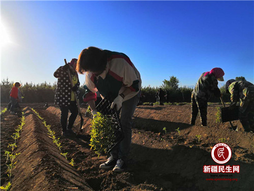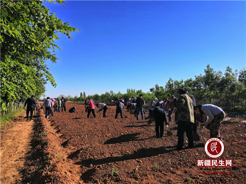 春耕时节,结亲干部、“访惠聚”工作队成员帮助贫困户挖坑、播种、放苗,铺地膜,减轻贫困户的劳动负担。“访惠聚”工作队第一书记龚文军节说:“孟学成家两口子都是残疾,两个孩子又在上学,家里最大的困难就是缺少劳动力。我们大家都来帮忙,不仅能及时播种,提高种植效率,也给他家省了不少的劳动雇佣费用,提高今年的家庭人均收入。”