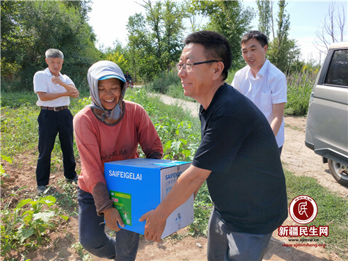 晚熟西红柿座果后的生长期,城关镇聘请阜康市农业局种植专家到贫困户地里现场指导,市农业技术推广中心为贫困户赠送了20公斤生物菌肥一箱,用于提高农作物产量,改善产品品质。