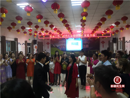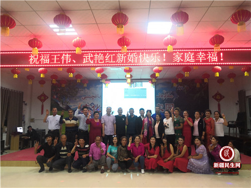 新疆民生网(鱼倩澜)7月22日的晚上,阿克苏市依干其乡英巴格村文化活动中心热闹非凡,一场别开生面的婚礼正在这里举行。汉族村民王新舍夫妇在全体维吾尔族村民的帮助下,为儿子王伟举办了一场特殊的维吾尔风格的婚礼。全村维吾尔族乡亲们就像赶集一样穿着民族盛装来到村委会,来庆祝这对汉族新人的婚礼。