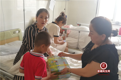 病房里,工行行长王涛询问了阿米乃木·阿不力米提身体状况,并叮嘱她安心接受治疗,祝愿早日康复,有什么困难就提,下派单位和工作队尽最大的努力帮助他们全家共渡难关。