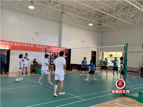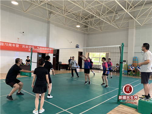新疆民生网(侯静文)为加强社区及联点单位之间的文化体育交流,提高社区工作者参与体育锻炼的意识,充分发挥基层工作者推动发展、服务群众、凝聚人心、促进和谐的作用,南湖社区党总支联合派出单位市住建局举办“民族团结一家亲”气排球比赛。