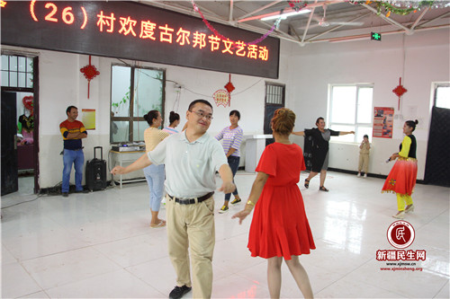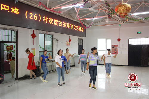 新疆民生网(宋海翔)8月12日,莎车县荒地镇英巴格村村民活动中心内洋溢着村民的欢声笑语、热闹非凡,掌声喝彩声此起彼伏。自治区信息中心驻村工作队、村“两委”组织村民在这里齐聚一堂,举办“民族团结一家亲”暨“欢度古尔邦节文艺活动”。活动中村文艺队展现了他们精心准备的舞蹈和歌唱节目,抒发了大家感党恩、团结致富奔小康的情怀。