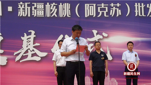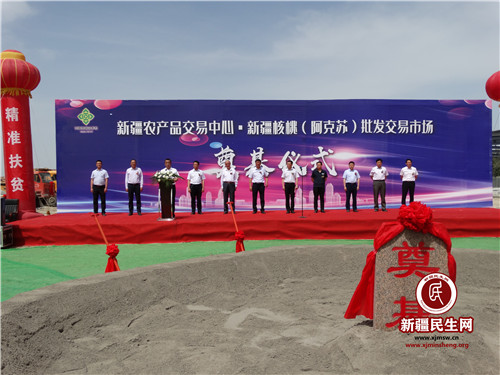新疆民生网(黄斌军)2019年6月18日,新疆农产品交易中心·阿克苏核桃交易市场项目奠基仪式在阿克苏市库木巴什乡举行。