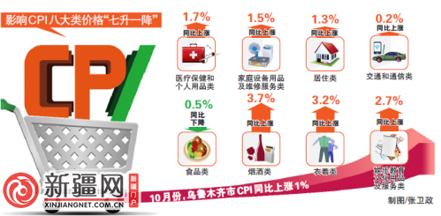 昨日,国家统计局乌鲁木齐调查队公布调查资料显示,一直是推动CPI上涨主要动力的食品类价格,在10月份“不升反降”,降幅为0.5%,影响CPI涨幅的八大类价格呈现“七升一降”态势。