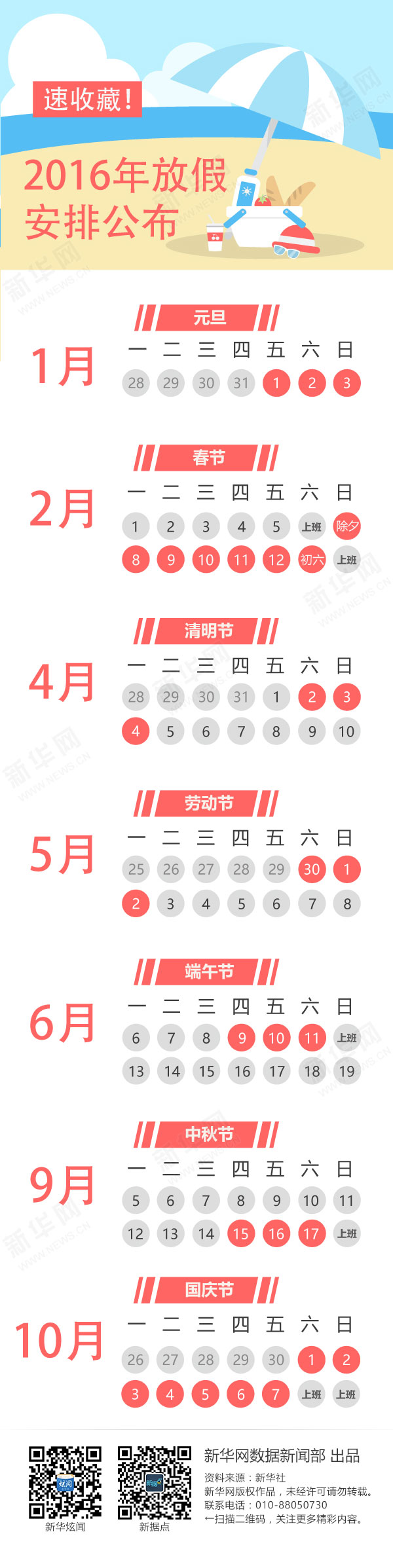 新华社北京12月10日电据中国政府网,国务院办公厅10日发出2016年部分节假日安排的通知。