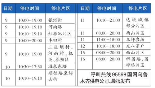 7月上旬乌鲁木齐这些片区停电