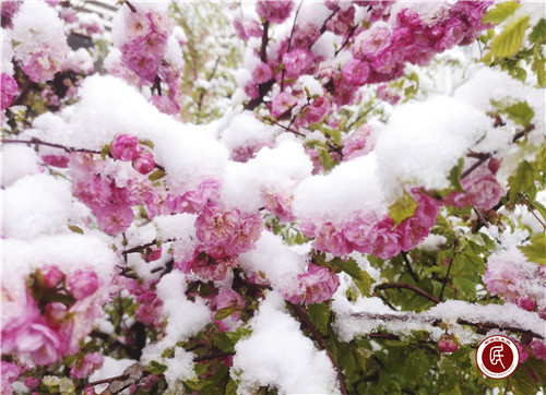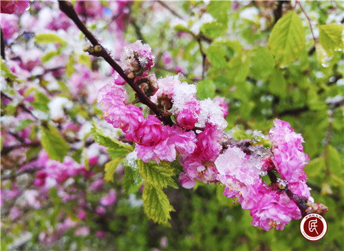 新疆民生网(蒋兴满、马红亮)5月8日,一场突如其来的大雪覆盖了阿合奇县哈拉奇乡,刚吐露的娇嫩花蕊托着晶莹的雪珠,在寒温下依旧傲然绽放。