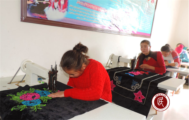 在塔勒德镇玉什托别村刺绣合作社里,笔者看到100台刺绣机在飞快的转动,五颜六色的壁挂、花毡、花褥、花帽、坎肩、家庭装饰品等民族刺绣工艺品,在 哈萨克族妇女细致的操作下被制作出来,非常的精美。正在用心刺绣哈萨克垫面的黑依拉古丽今年26岁,曾是村里贫困户的她,如今成了大忙人,不但自己学会了刺绣技术还成了师傅,每月也有2000元的收入。