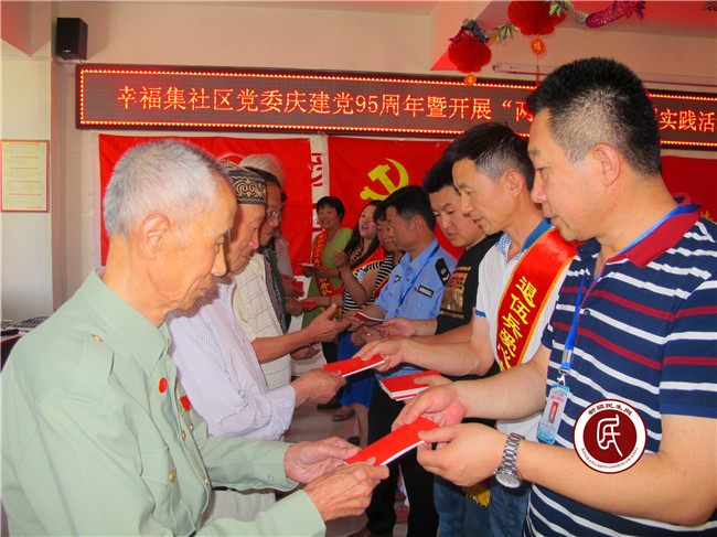 当日,在“党徽耀我心”主题实践活动中,幸福集社区党支部的党员们为离退休老党员赠送了《中国共产党章程》小册子。离休干部老党员刘国珍将30枚党徽分别给社区工作的党员佩戴上,同时还将1000元特殊党费交给社区党支部。来自乌鲁木齐退伍兵爱心志愿者服务队、新疆众爱爱心公益社、新疆乐哈哈公益联盟的党员志愿者为离退休老党员和社区工作人员奉献了歌曲、舞蹈等文艺节目。