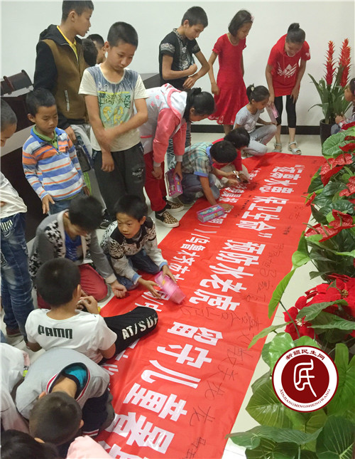 讲座结束后,主办方取下贴在墙上的横幅,孩子们在横幅上签上了自己的名字,做预防溺水、安全度夏的表率。