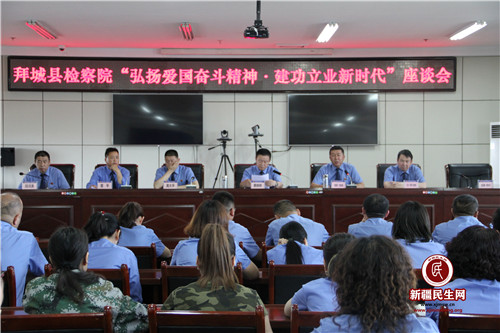 新疆民生网(王璐)爱国之志,中华魂魄;奋斗之行,时代强音。拜城县人民检察院于2019年7月11日组织全院干警围绕“弘扬爱国奋斗精神 ·建功立业新时代”为主题,召开了座谈会。