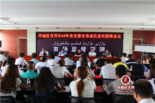 新疆民生网(谭红霞)7月10日,拜城县食安委全体成员首次联席会议在市场监督管理局召开,人民政府副县长、食安委副主任赵鹏出席会议并作讲话,县食安办主任、市场监督管理局党组书记吴多平主持会议,县食安委成员单位、乡镇(场)食品安全工作分管领导共计50余人参加会议。