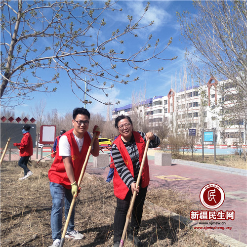 为了使年轻人能够不断地成长,眼里有活。朱玉梅主任身体力行,今年5月,为改善社区居民的居住环境,社区带头建造起了民族团结“邻·聚林”,经过一段时间之后,林子里的杂草疯狂生长,小树苗在杂草堆里都看不到了。朱玉梅在下班时间,一个人默默地进行除草,后来留在社区加班的同事看到了,就主动加入进去,同时也给其他的年轻人打电话,社区居民帕尔哈提看到之后,也赶紧跑了过来,不一会,一群人就出现在了“邻·聚林”中。