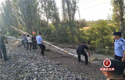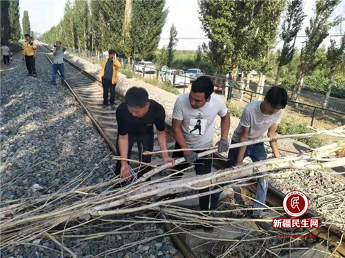 新疆民生网(唐努尔、库的来提)为做好铁路护路联防治安整治,确保铁路沿线运行安全,阜康市城关镇多日来在市政法委统筹协调下,联合乌鲁木齐铁路局、铁路派出所等相关部门深入铁路沿线村,对线路两侧可能会危及行车及行人安全的枯树、大树倒伏情况进行登记,确定砍伐重点区段后,于7月24日进行统一砍伐,共砍伐铁路防护网内树木24棵,网外树木40棵,进一步确保了铁路线路的安全稳定,消除了潜在的安全隐患。