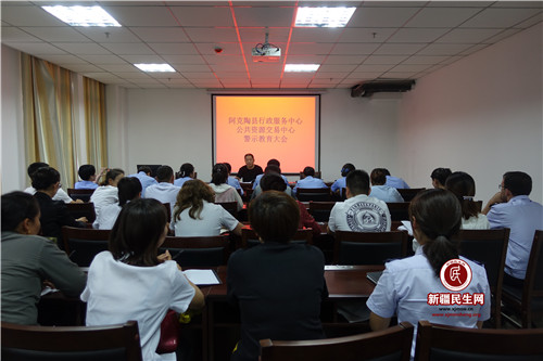 新疆民生网邓成刚)7月23日下午,阿克陶县行政服务中心召开警示教育大会。行政服务中心干部、驻服务中心各窗口单位工作人员、公共资源交易中心干部共计40余人参加。