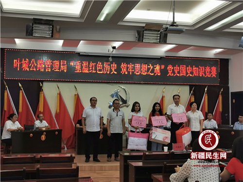 新疆民生网高建华、张丽)7月24日,叶城公路管理分局组织开展“重温红色历史 筑牢思想之魂”党史国史知识竞赛。旨在引导党员干部认真学习党史国史、正确了解党情国情,做到知史爱党、知史爱国。活动在分局五楼会议室举行,来自局机关及基层四支代表队、各分局干部职工共100余人参加了此次活动。