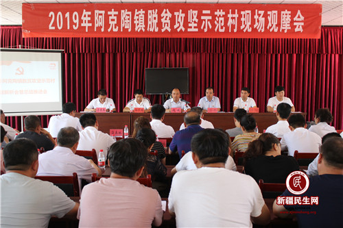 新疆民生网(陈昱)为深入学习贯彻习近平总书记扶贫开发重要战略思想,贯彻落实自治区、自治州党委和县委关于脱贫攻坚的系列决策部署,进一步抓好脱贫攻坚村级规范化建设,营造出比学赶超的攻坚氛围,促进脱贫攻坚整体工作水平的提升。7月25日上午,阿克陶县阿克陶镇在巴仁艾日克村召开脱贫攻坚示范村现场观摩会。江西指导组成员、镇副主任科员以上领导、县扶贫办工作人员、镇全体扶贫专干、各村第一书记、党支部书记、村扶贫专干参加现场观摩。