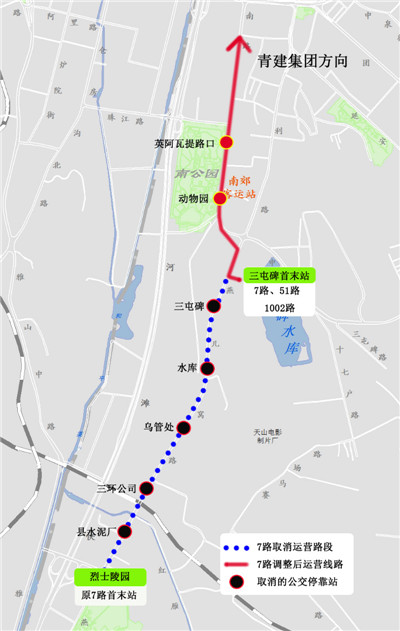 7路公交线路首末站由青建集团至烈士陵园,调整为青建集团至三屯碑车场。