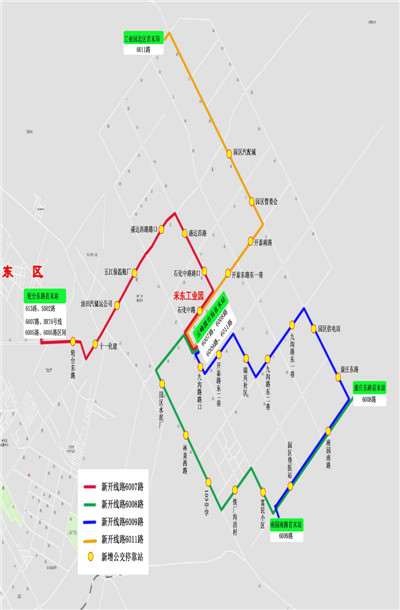 6007路、6008路、6009路、6011路新开线路示意图