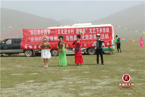 文艺戏曲进基层。县歌舞团以精心编排的歌曲串联、舞蹈、乐器演奏、小品等群众喜闻乐见的表演方式,送文艺进草原、进军营、进牧区、进乡村、进企业。截至目前,已将多个弘扬民族团结、唱响新时代主旋律的文艺节目在全县各乡村牧点巡回演出28场次,精彩的的节目表演,引得现场观众掌声阵阵,经久不息。