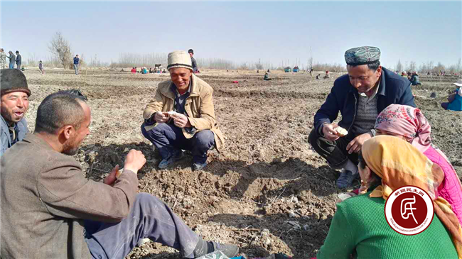 工作组通过“两委”班子了解到,正在进行土地平整、防风固沙造林的村民劳动地点与家里较远,周围没有做饭的地方,3月1日中午,工作组一行赶在村民们午饭前,将900个馕送到了进行土地平整的450位村民手中,并给防风固沙造林的50位村民送去了100个馕和50瓶矿泉水,慰问了正在劳动的村民们,并在田间地头上宣传了党的政策,进一步促进了各民族交往交流交融。“希望大家用勤劳的双手,尽快脱贫致富,建设好美丽的加依村”,工作组蔡建组长在与村民交流时提出了希望。村民们非常激动,纷纷感谢工作组想着他们,惦记着他们。