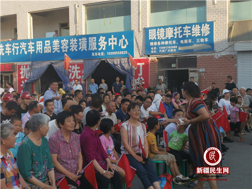 新疆民生网(赵棋)为进一步提高辖区居民防电信诈骗、反电信诈骗意识。2019年8月9日晚20:00点,辖区美食广场也渐渐变的凉爽。乌鲁木齐市自然资源局驻高新区(新市区)二工乡湖州路西社区“访惠聚”工作队组织辖区居民400余人在管辖区内的美食广场邀请高新区(新市区)公安分局文艺小分队开展以“反电信诈骗”及“民族团结一家亲”为主题的基层文艺宣传活动。为活跃现场气氛,工作队购买了100余件实用小奖品,以知识抢答等多种形式发放给观众。