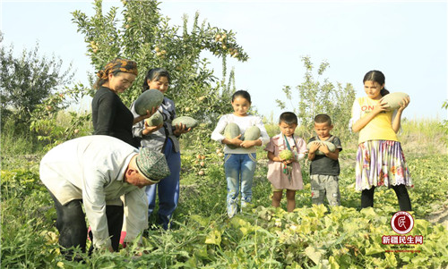 新疆民生网(阿不拉江·吐尼亚孜)这就是充满丰收味道的阿瓦提县上游水库片区喀尔达西村的场景啊!勤奋的喀尔达西村农民买提尼亚孜·扎依提家又迎来了新的丰收季,他今年81岁了,家里有9口人,他们家种的100亩棉花快要开花了,家门前种的10亩地西瓜已经成熟,又大又甜,已经卖了3500元的西瓜,家后面的8亩果园里桃子、苹果、葡萄都熟的让人流口水,今年的收入预计达到10万多,他们家的大丰收季到来了!