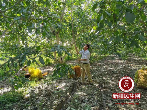 新疆民生网(李国卿)金秋九月,核桃新村果园里的核桃在微风中摇曳,提醒着人们快将它们采摘。在秋收关键期,温宿县核桃新村的各党员干部、职工纷纷深入田间地头,对辖区村民进行走访慰问,为劳动力缺乏的困难群众采摘核桃,用真情和汗水得到了村民的好评。