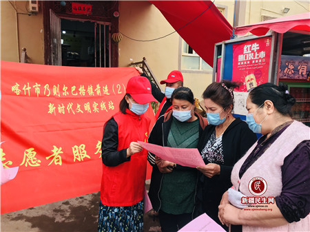 自2020年5月,前进村被确定为喀什市新时代文明实践工作试点村,村党总支紧紧围绕试点工作的有关要求,结合乡村实际,积极探索创新建设制度和运行机制。创新“骨干+招募”文明实践志愿服务队伍建设,建立以村干部、党员、先进典型、“四老”人员等为骨干,以传播习近平新时代中国特色社会主义思想和宣讲党的方针政策为重点的8支志愿队伍,登记在册志愿者400人。