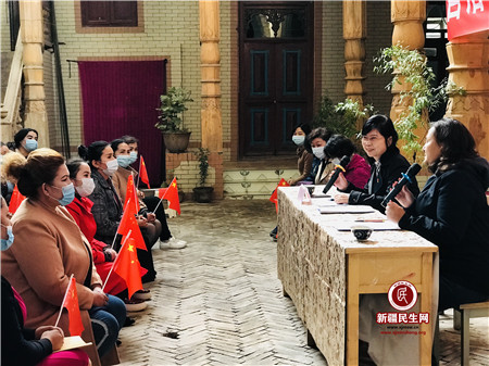 10月12日,自治区妇联党组书记、副主席王丽霞在前进村文化大院,向农民群众宣讲会议精神,并与基层群众互动交流,让新时代党的治疆方略家喻户晓、落地生根。
