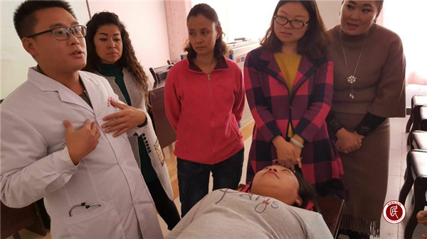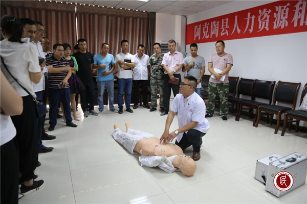 图为第九批援疆干部人才杨勇正在进行急救常识培训