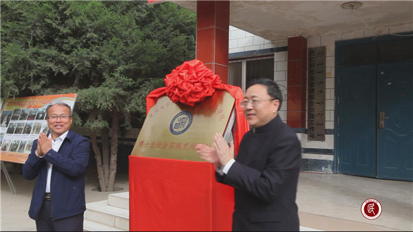 (图为克州党委常委、组织部部长龙明姬与复旦大学国际关系与公共事务学院书记刘季平共同为巴仁村博士研究生社会实践基地揭牌)