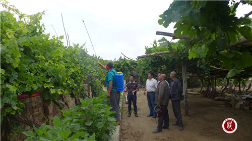 村民喜笑颜开,互相交谈着葡萄庭院改造的看法和想法,对脱贫致富充满了憧憬。